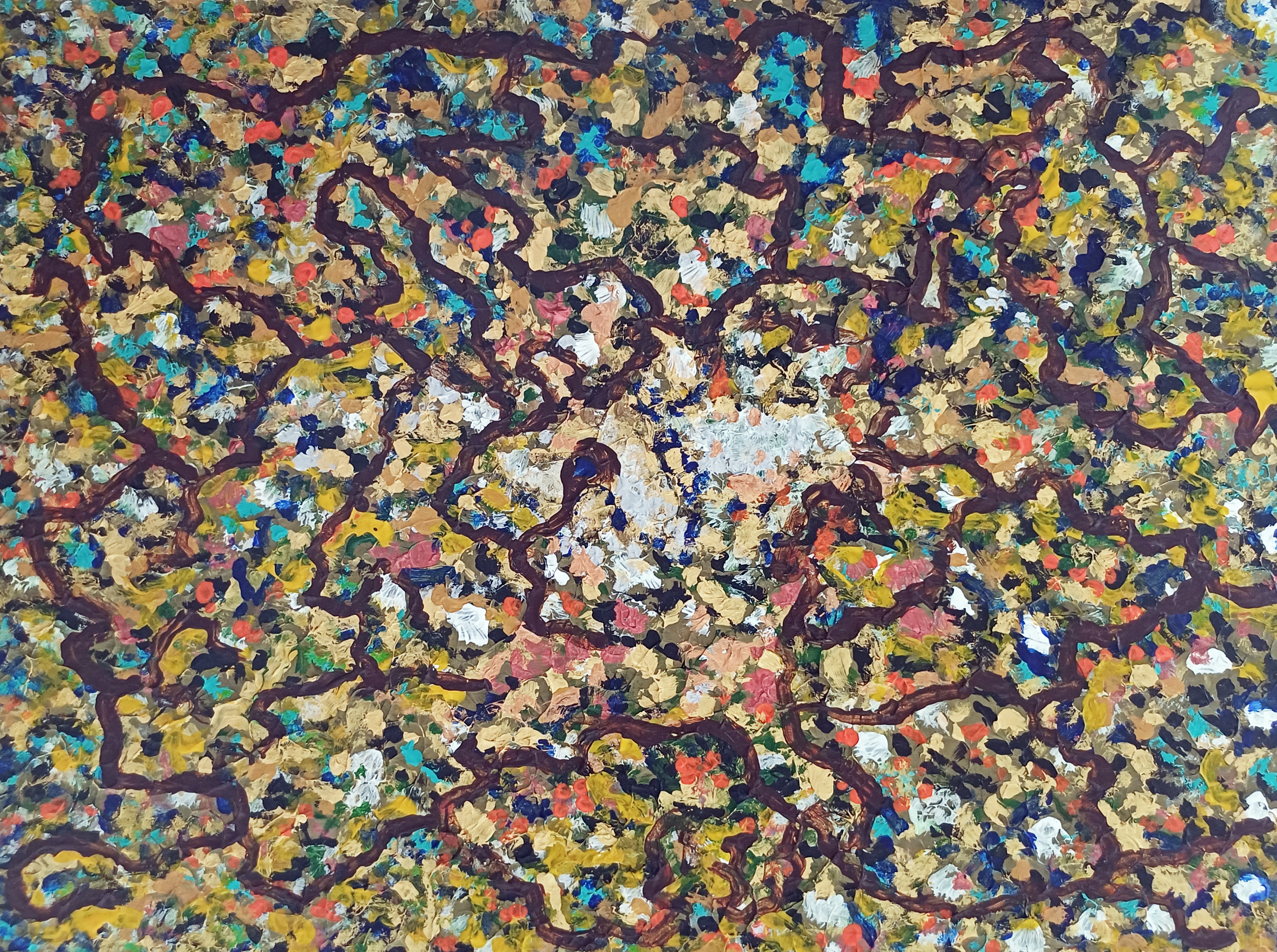 At first glance, it’s a frenzy of colour and depth. Production, though, is not merely random. A search for pathways. Ideas.