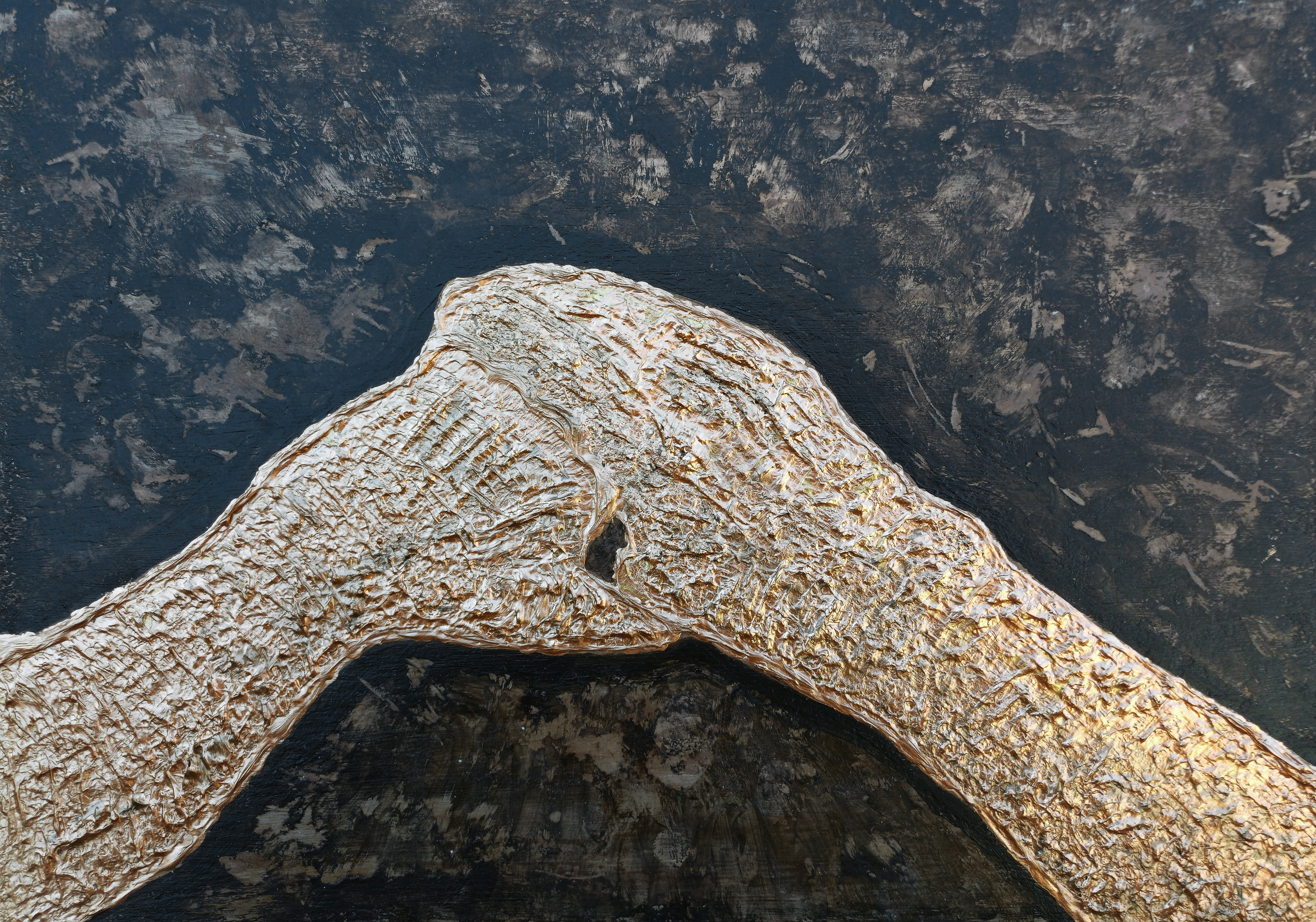 The work carries the energy of nature seen up close: the shimmer of moss and earth, the shifting tones of autumn leaves, the microscopic geometry of cells branching into unseen directions. Yet it remains entirely abstract — a landscape of the mind, painted directly from impulse.