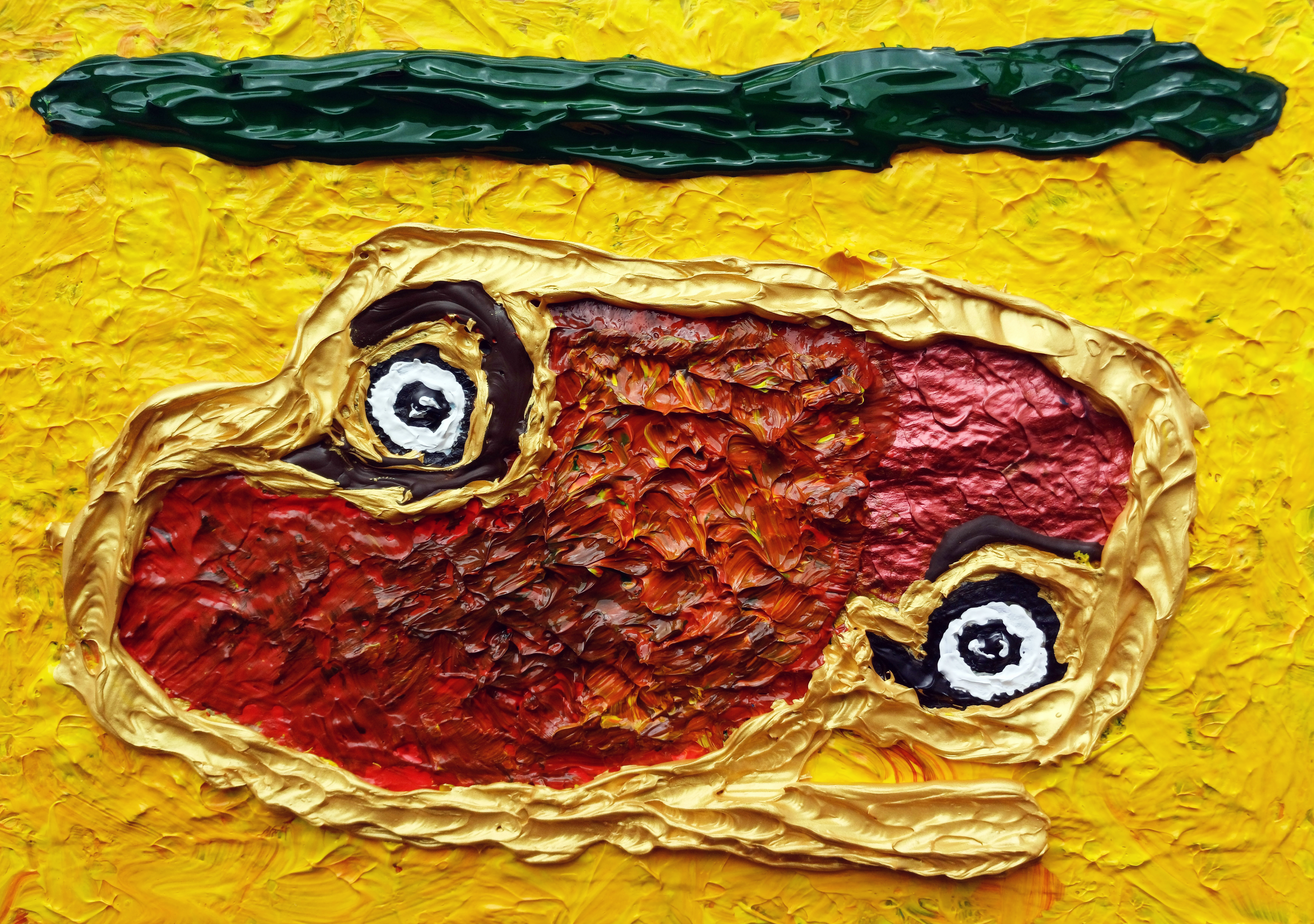 “Golden Whale with a Voice” [21st to 27th September 2024] by Matt The Unfathomable Artist, acrylic paint on 250gsm A4 mixed media art paper, 6960 x 4896 pixels.