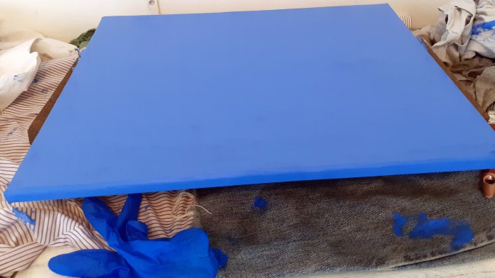 Photograph below shows my ITC Kristen version of the two, first edition, canvases drying. The Times New Roman blue canvas lay left of ITC Kristen on a workbench also drying in readiness for pencil and oil paintwork.