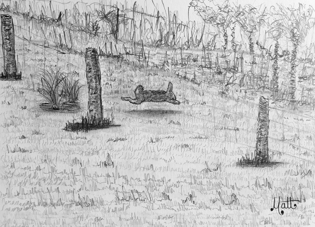 The photograph is very grainy due to the zoom and speed of the rabbit, taken from a mobile phone video recording. Therefore I needed to freestyle somewhat.