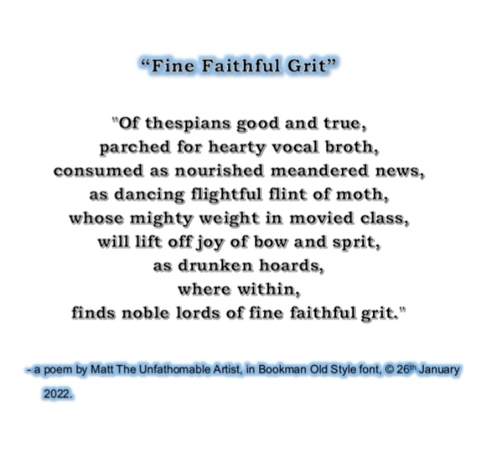 – a poem by Matt The Unfathomable Artist, in Bookman Old Style font, © 26th January 2022.
