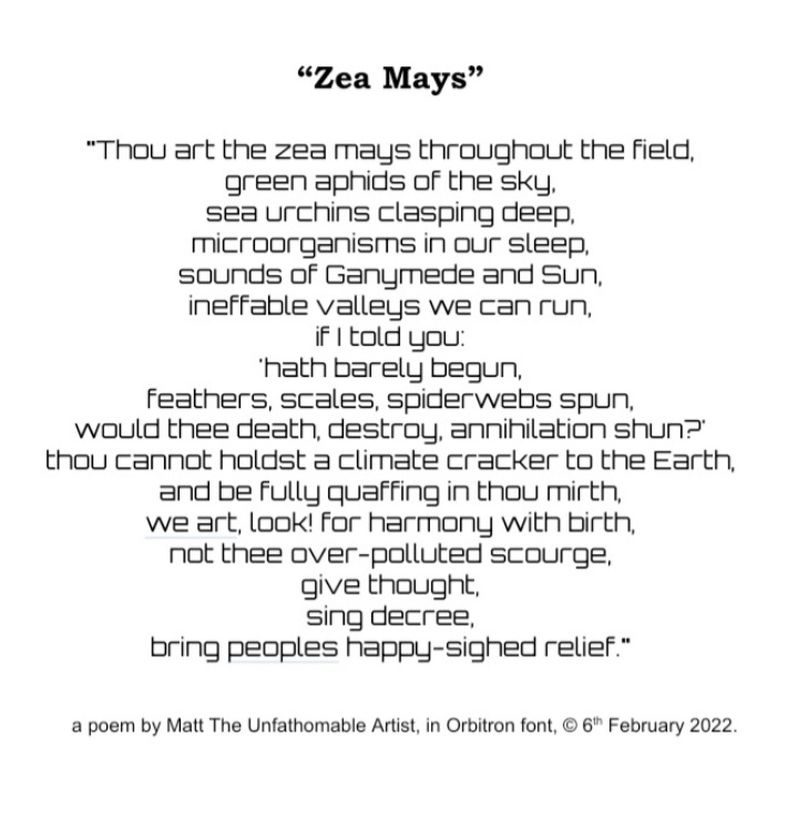 a poem by Matt The Unfathomable Artist, © 6th February 2022.