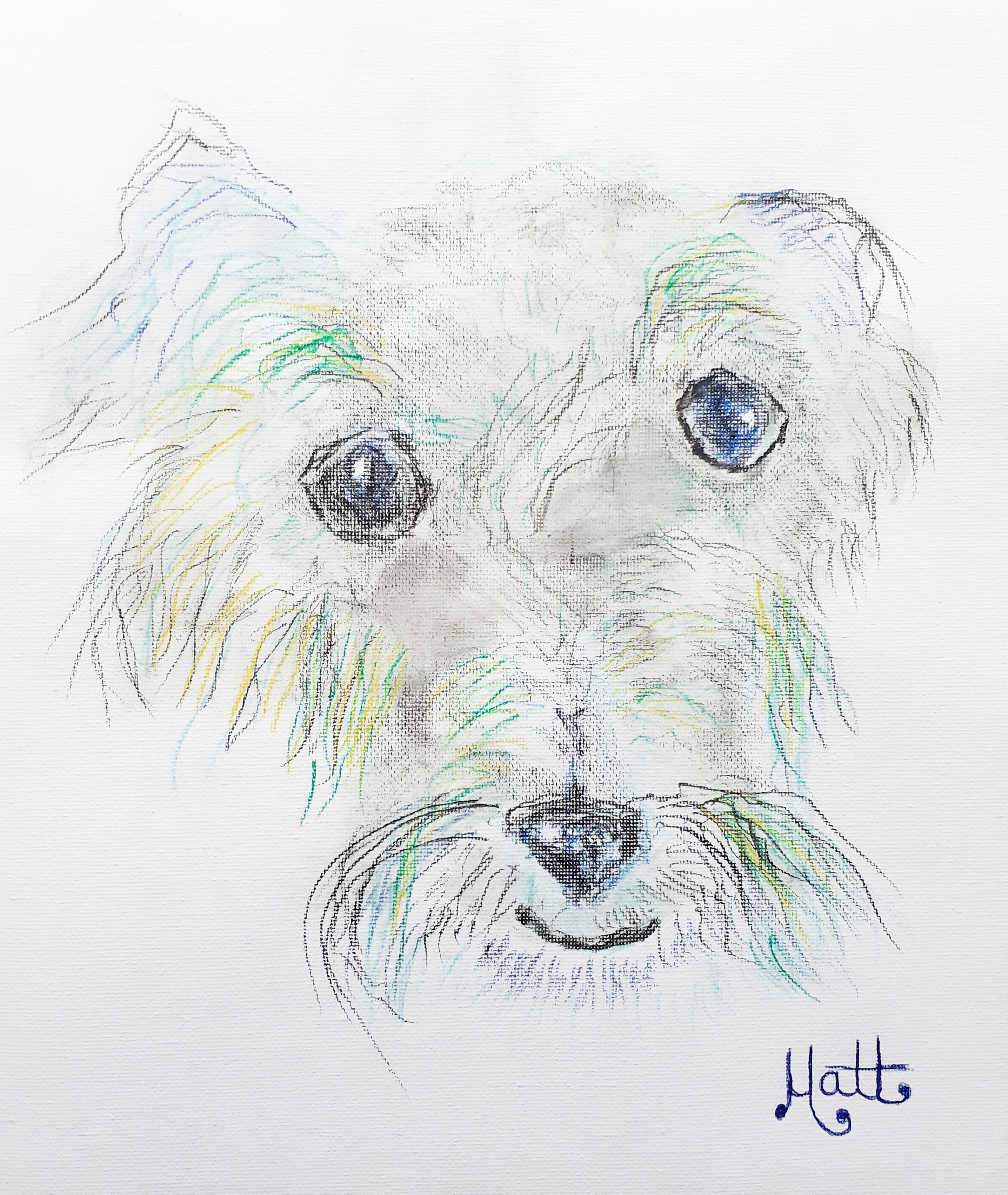 More spontaneity. Here are two dog artworks. Two different young dogs from within my family. I’m not sure I ever drew a dog before as an adult, to be perfectly honest.