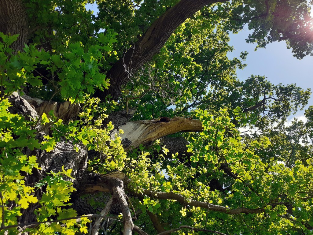 “King James VI & I Oak of 1612 Branches in Sunlight – photograph” taken on 19th May 2020 at 1443hrs.
