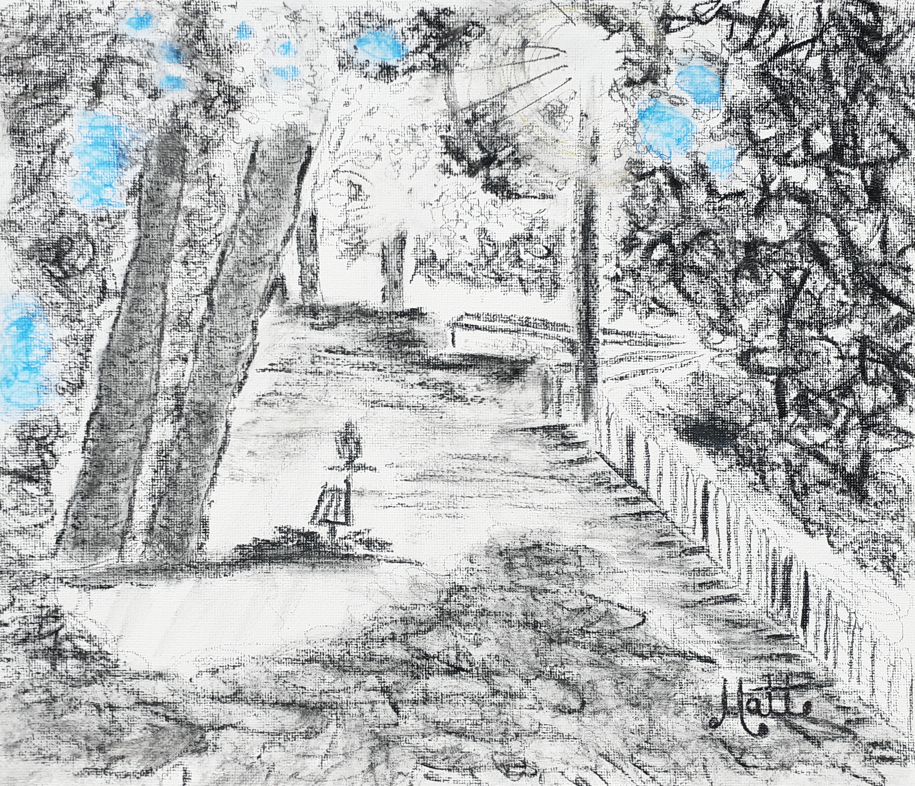 My sketch also picks up on how I personally viewed the pathway that evening. With some details more discernible in the darkness than they are from the photograph.