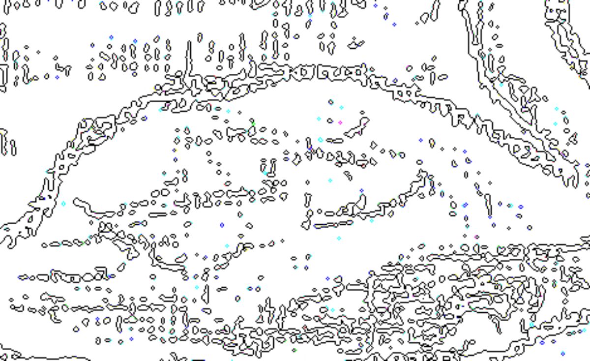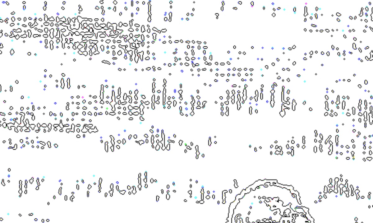 With all three cropped versions you can now clearly see the colour dots! Here are the exact hex colours #FF34FF (magenta), #0CFF0C (green), #3737FF (blue) and #5DFFFF (aqua) just to highlight the main colours.