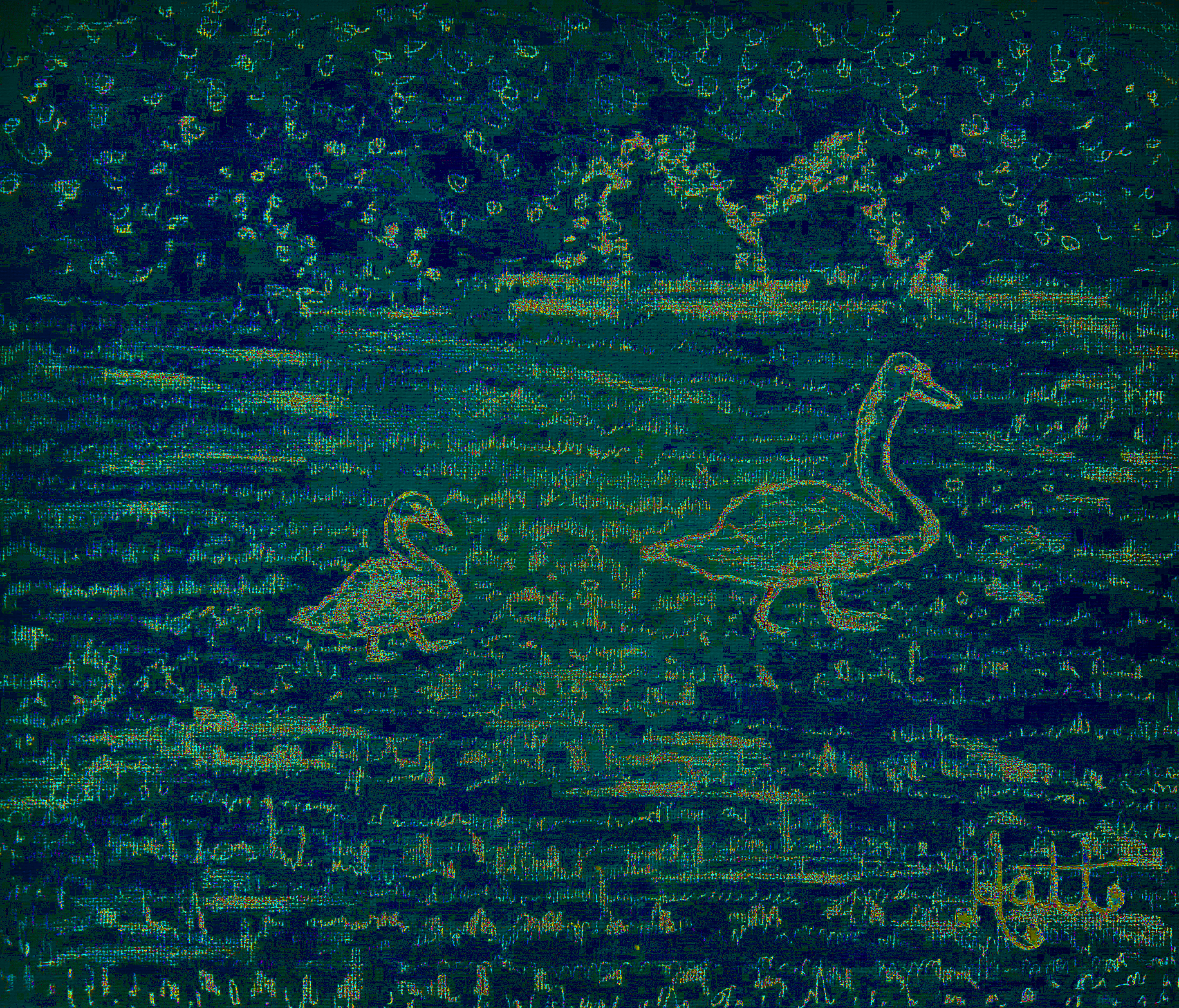 Grass-Brain looked kind of Matrix-like. This is actually the zoomed head of the swan with grasses overhead!