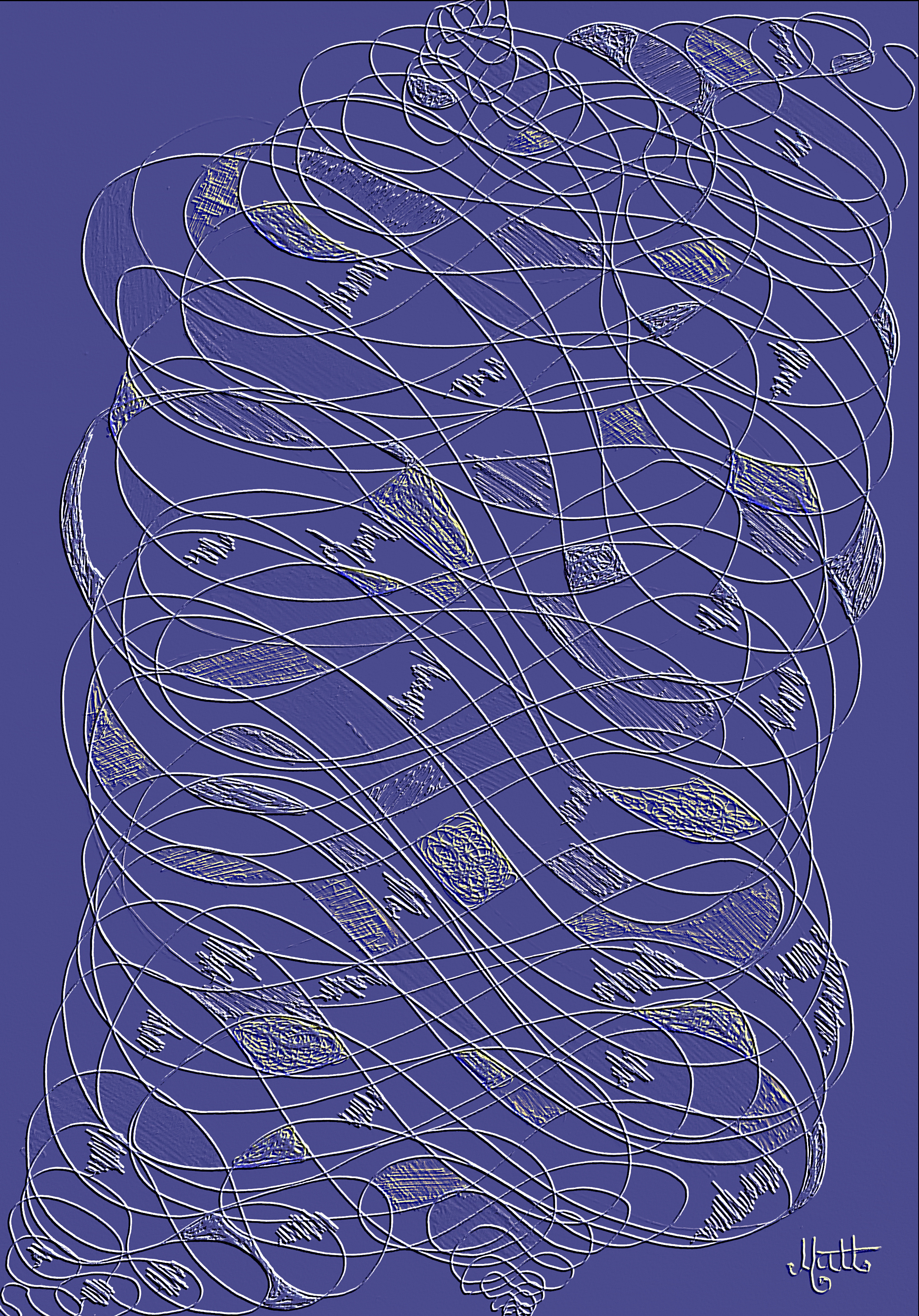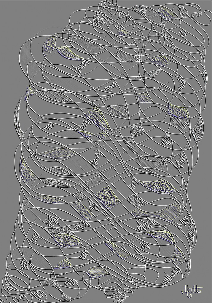 Dark Blue Embossed, above. I carefully hone the colours, contrasts and tones in my digital works. Dark Blue Embossed reveals the culmination of a colour to the nth degree. For each and every digital artwork you see here I fine tuned the tonal ranges to within one point of one hundred and eighty points, through three finite variables.