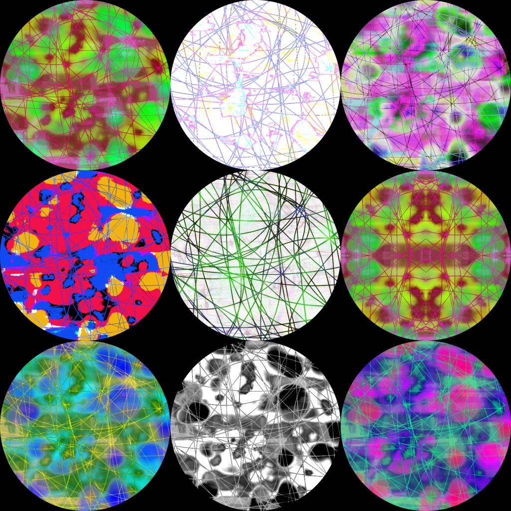 “Abstract Geometric Lines #2 – Circles Collage” features nine unique pieces of my second original Abstract Geometric Lines digitally hand painted and drawn artwork produced using computer software with a standard mouse.