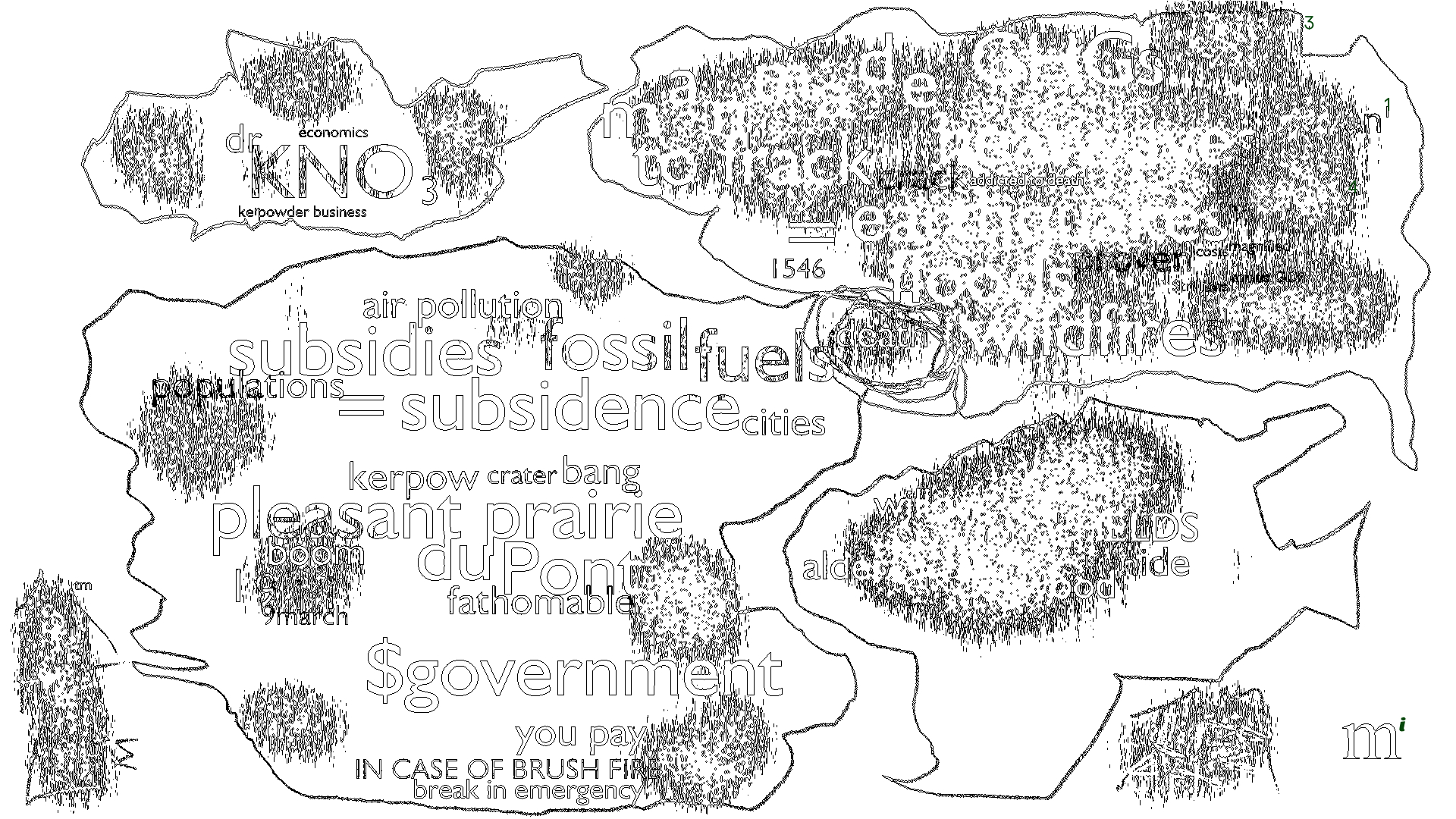 ”evil mechanotide – SolarScape“ makes for heavily contrasting colours. Newspaper headlines look like cuttings.