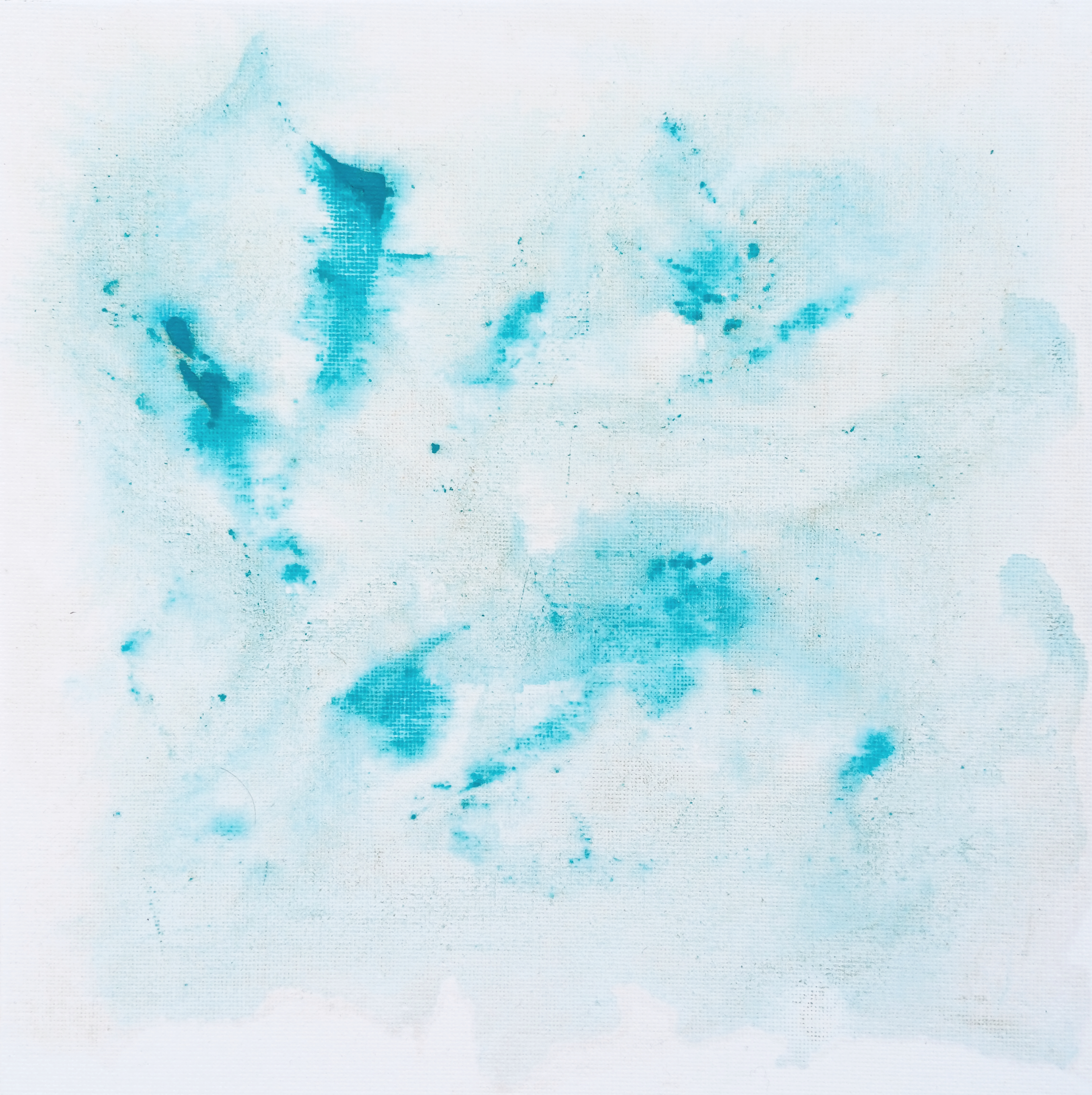 I made three miniature canvas artworks on the same draft evening session the 4th April. This cyan liquid paint drip and palette knife working is the second piece, completed in literal minutes.