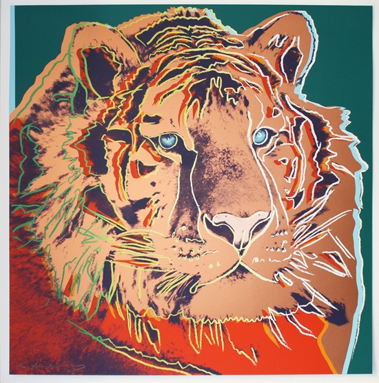 ‘Siberian Tiger from Endangered Species’ [1983] by Andy Warhol, Screenprint on Lenox Museum Board, 38″ x 38″.