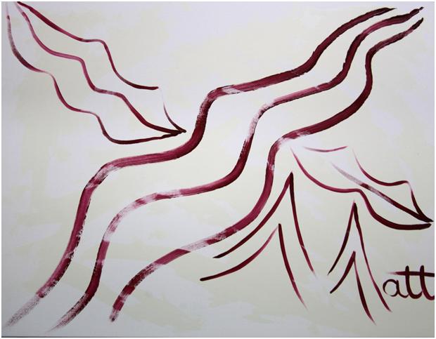 At the compositional core, elongated vertical trunks extend upward and outward, interconnected by branching limbs that disperse through the canvas. These forms, though partially abstracted, suggest a juvenile oak reaching toward maturity. The background finesses into dappled pigment—some smooth, others tumultuous—echoing the living randomness of a wild, managed forest. The white flecks and patches may allude to the presence of blossom, light reflections, or birds mid-flight—wrens perhaps—evoking the title’s poetic imagery.