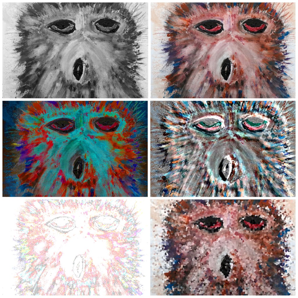 From the original acrylic I then made five differing tones and produced a pleasing 3×2 Collage from these digital pieces.