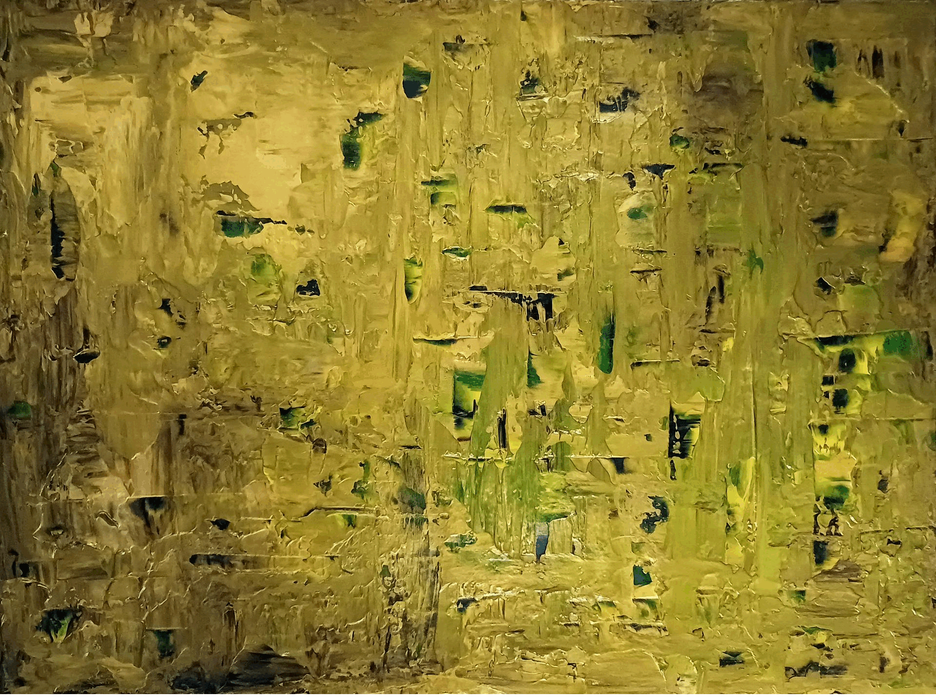 My intuitive brush scrapes of “Fragments #1”in a Cy Twombly style unintentionally collaborating with the Jean-Michel Basquiat style purposed in “Orange & Violet Untitled”.