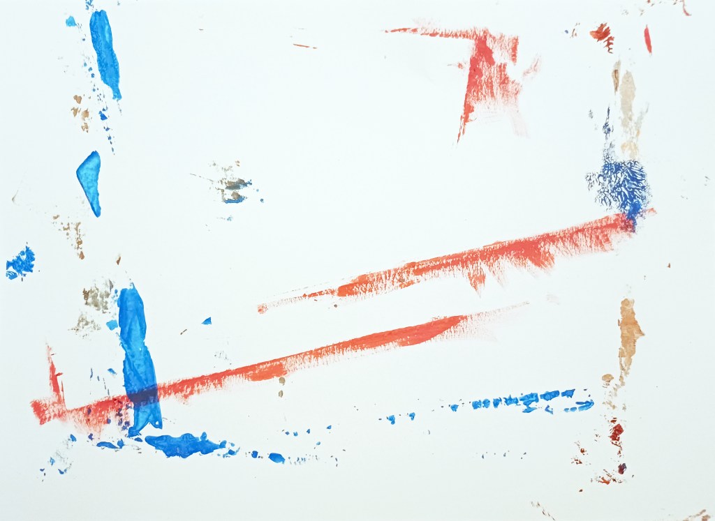 You can see entirely random palette marks made, immediately above, whilst working on another paper canvas. The premarked paper is unintended scrapes of my palette knife whilst I worked on âCavernous Red Blue Abyssâ.