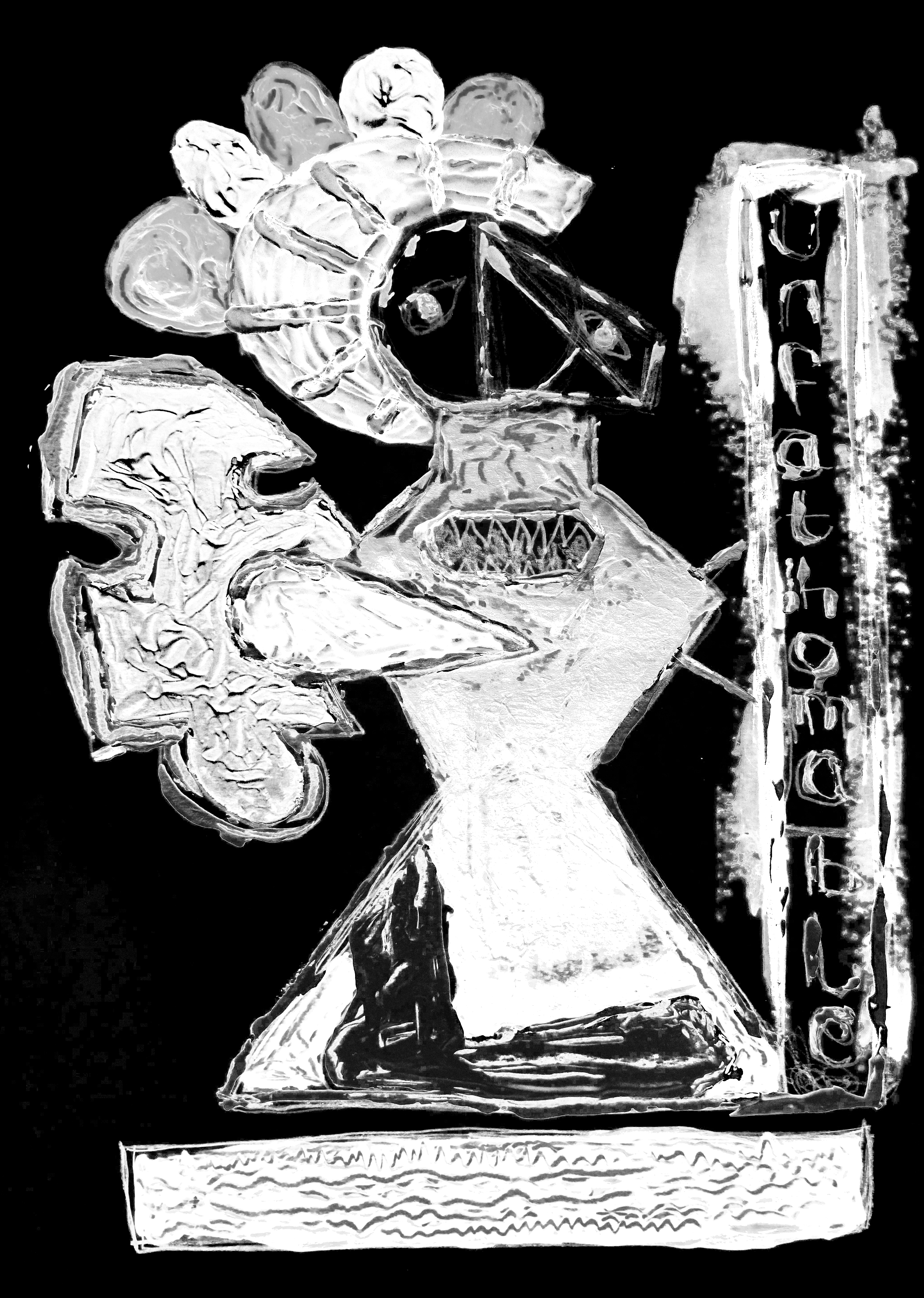 This piece is inadvertently inspired by Edvard Munch entitled âThe Fathomable Screamâ and made of approximately three drafts on two separate days with around three hours working. Beginning the work on lightly prepainted paper.