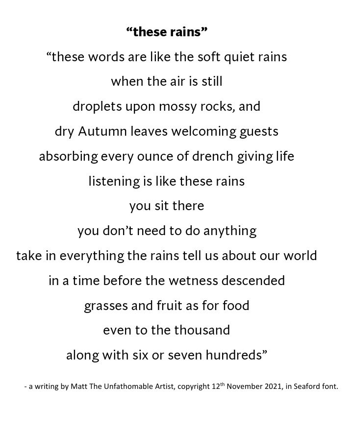 – conservation poem by Matt The Unfathomable Artist, copyright © 11th July 2021.