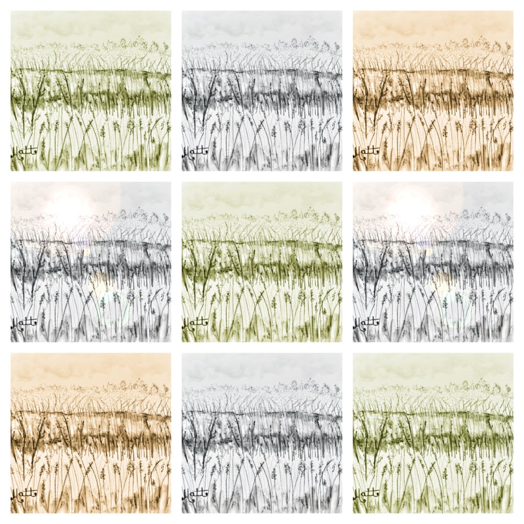 The image began with the immensely pleasurable action of photography in the field on my nature walk of 25th November. Six unique compositions, three of which have already produced artistic output.