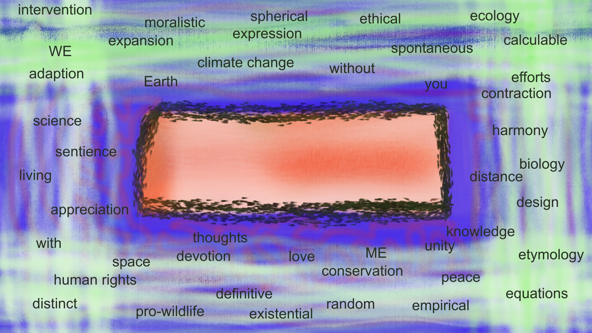 The work invites the viewer to regard the oak as more warmth than cold — a subtle inversion of colour theory and emotional reading. Eyes also serve as a symbolic oversight: the oak having stood for centuries, holding seasons, weather and human timeframes within its aged circles.