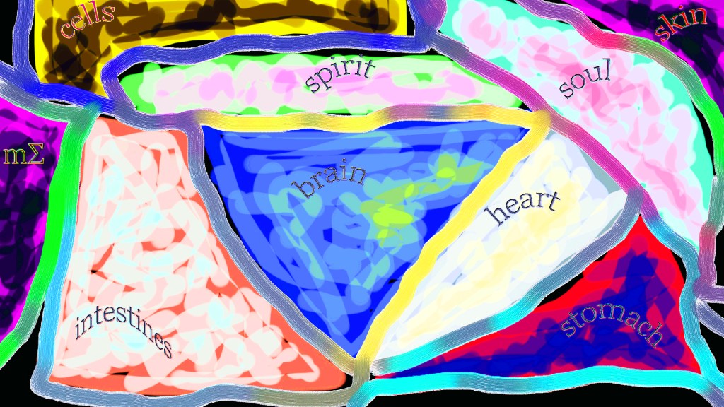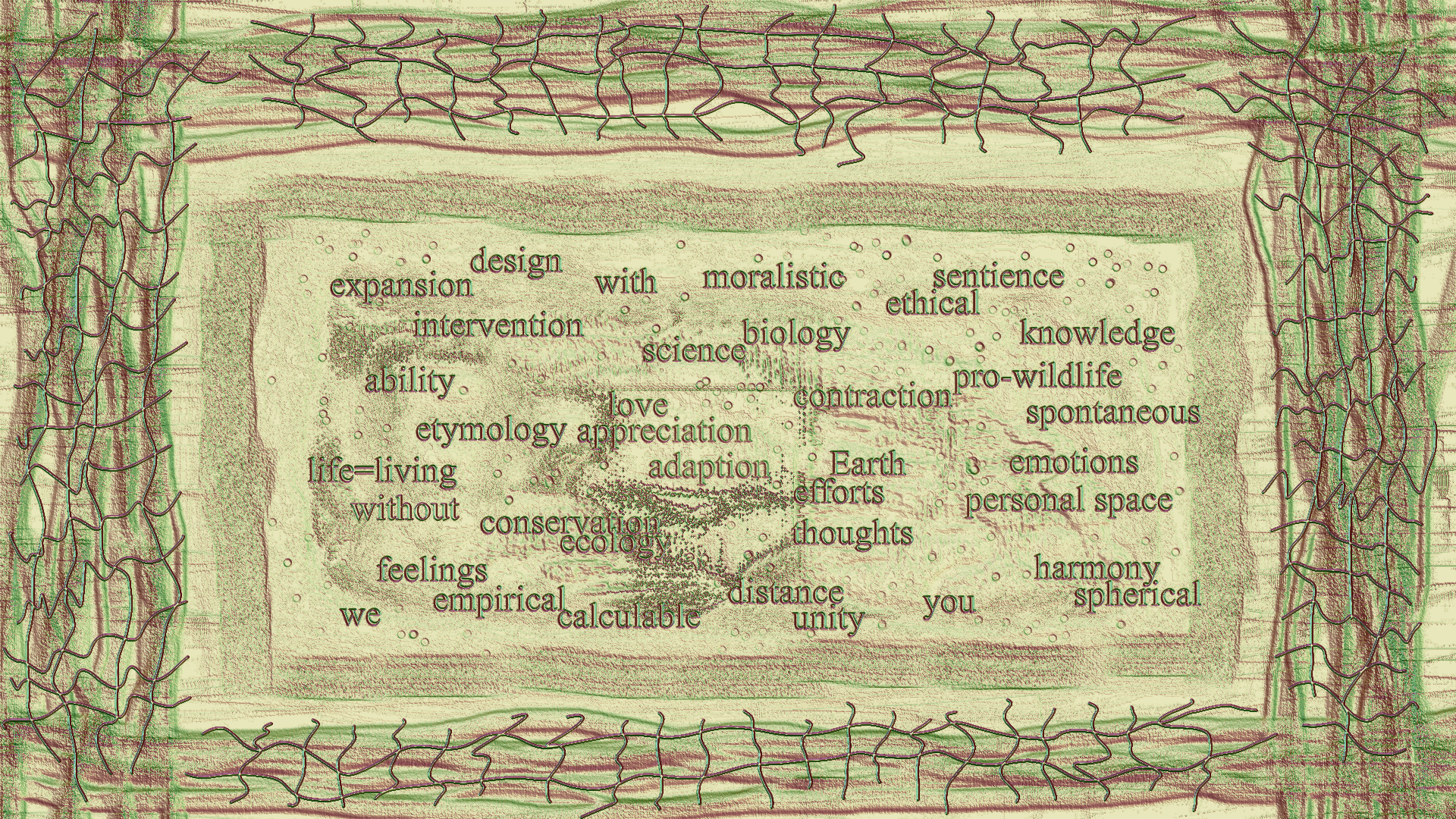 The second input source is the cross-section topology of the manmade cut, fallen branch log, seen above in my photograph. Concentric rings record centuries of growth lines.