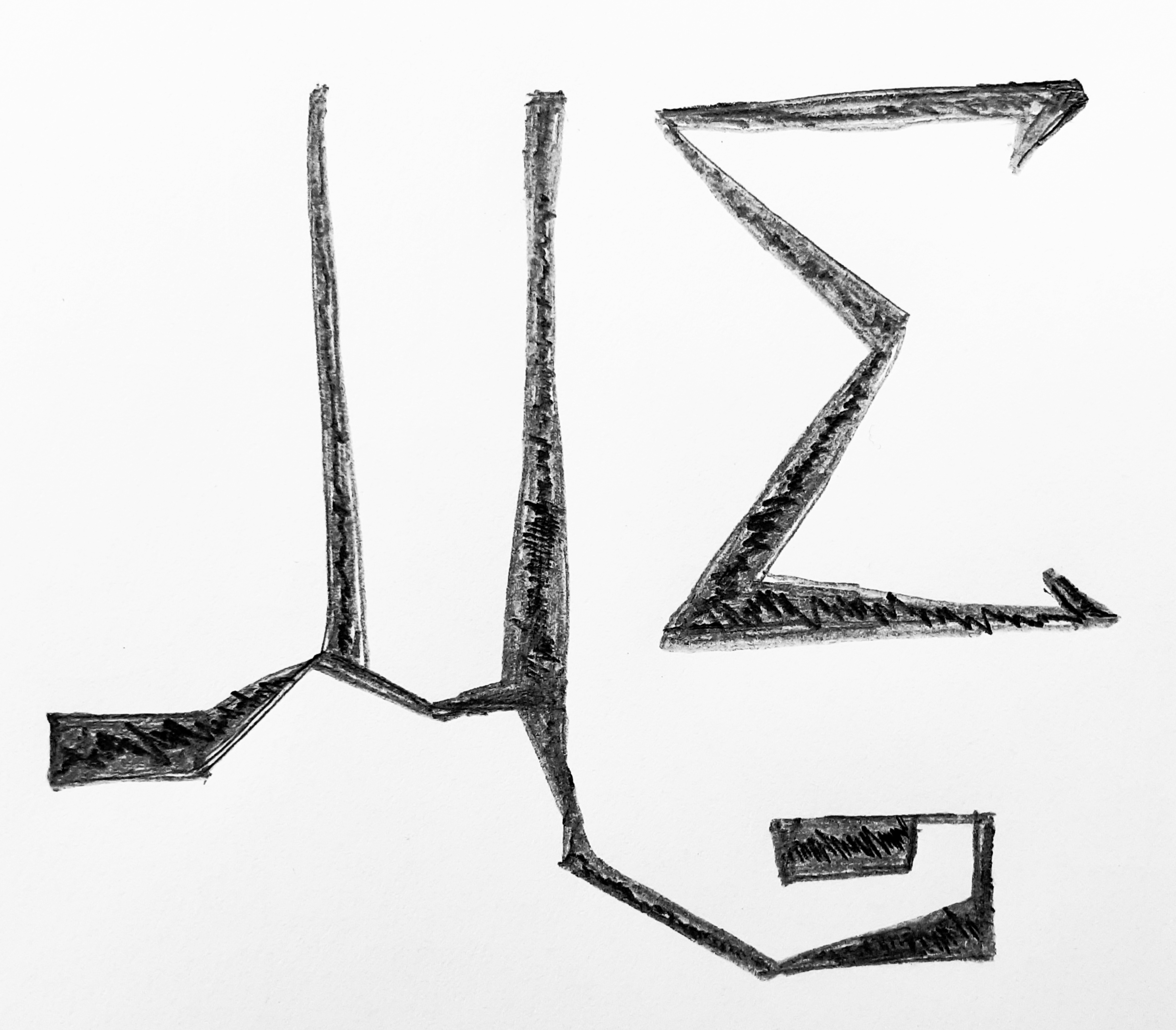 At first I kind of doodled on the page, using my standard ‘M’ found upon my paper artworks throughout my digital social media. However, my early doodles didn’t represent the word ‘technological’ in any way.