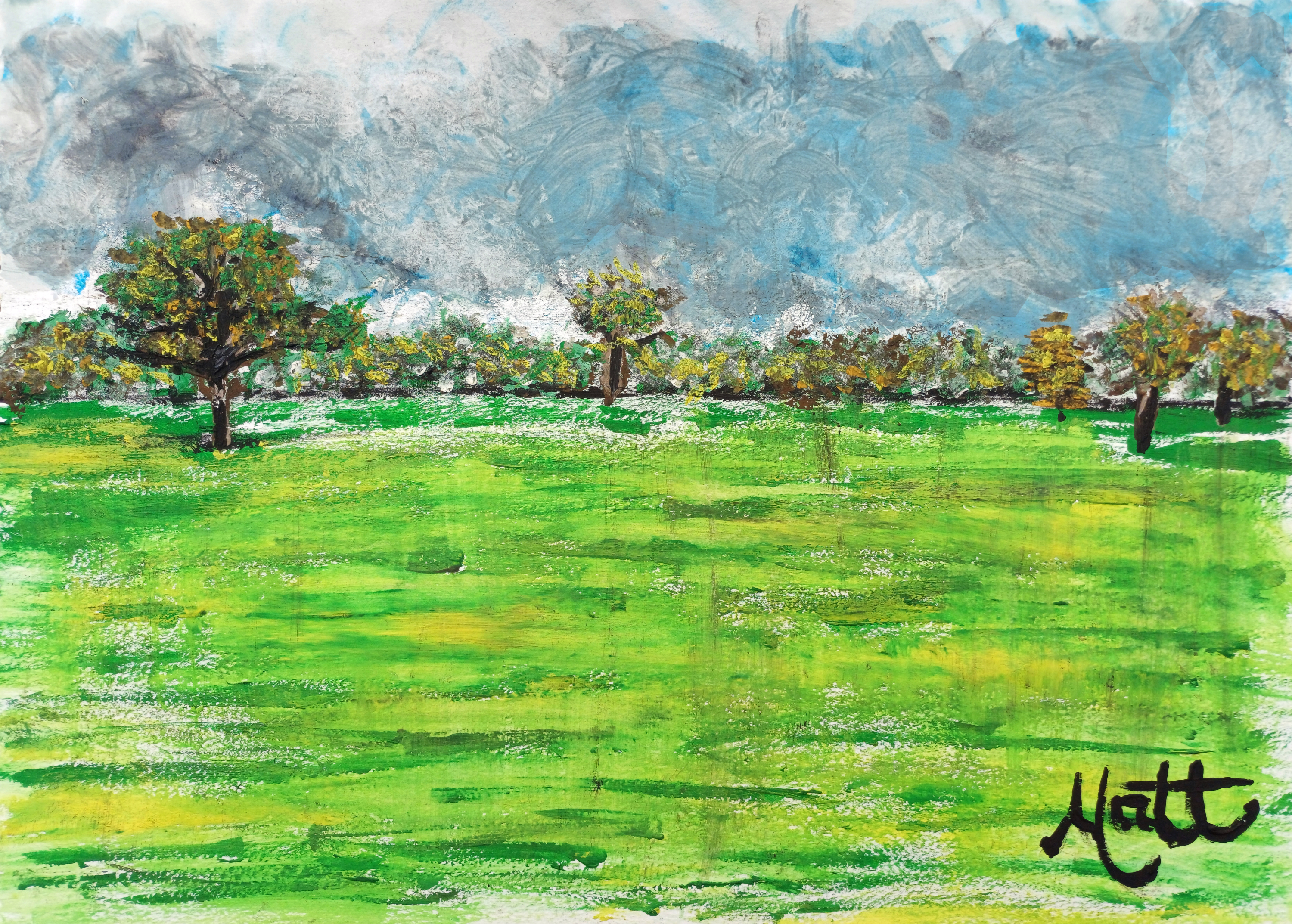 This is an original gouache landscape painting made from a blank canvas in just 56 minutes 9 seconds on A3 artists paper excluding signing.