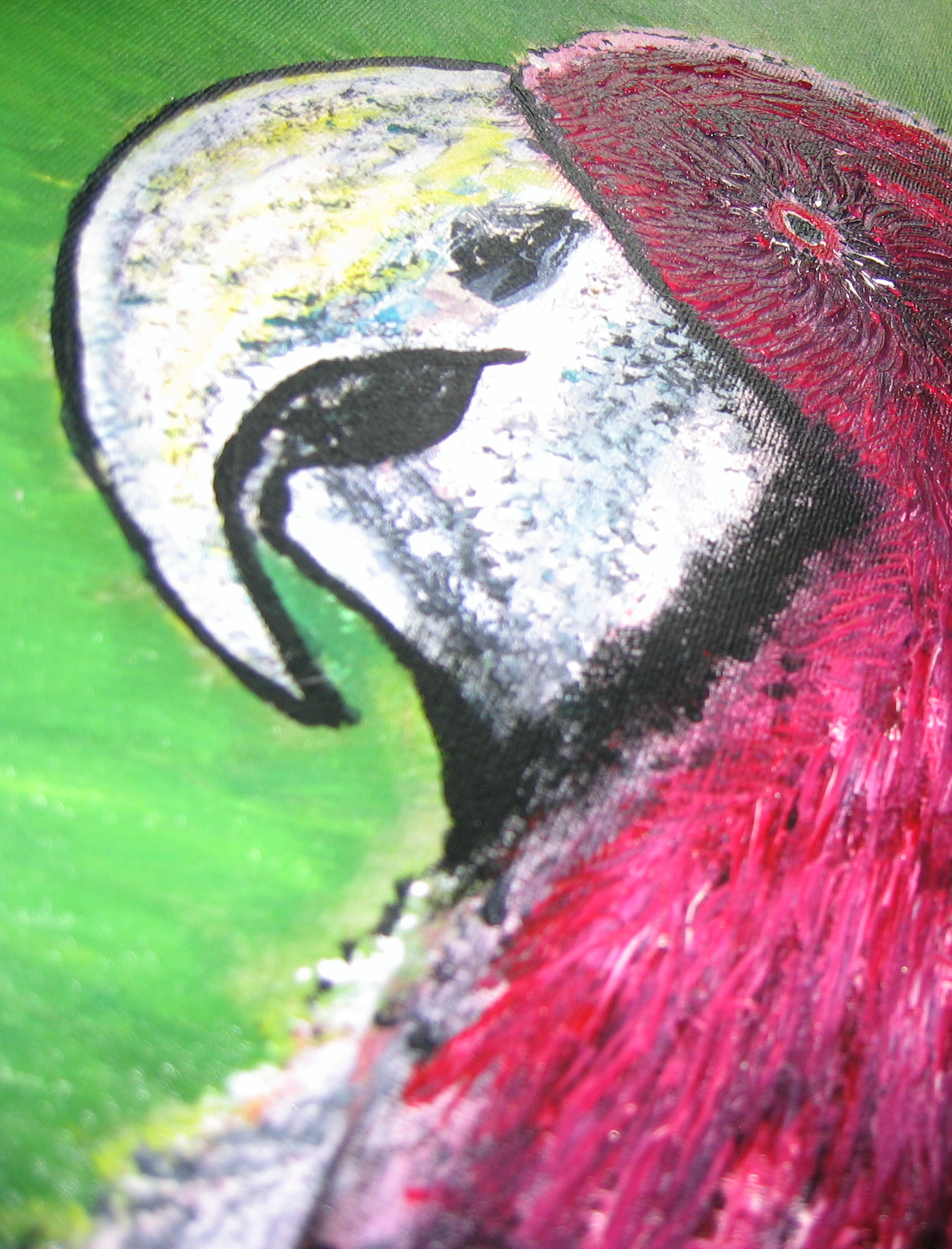 Detailed view [1] of ‘Self Portrait of a Parrot’ [2010] by Matt The Unfathomable Artist, Oil over Pastel artwork on canvas, 20 ins x 16 ins.
