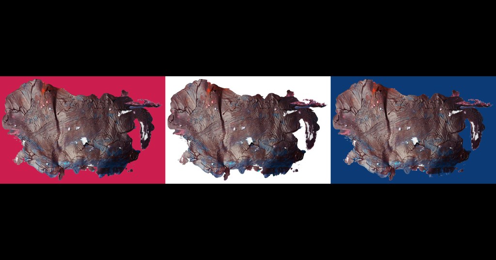 “White Old Glory Colour North American Bison” [digital artwork, 9th/12th September 2024] by Matt The Unfathomable Artist, 6000 x 3899 pixels.