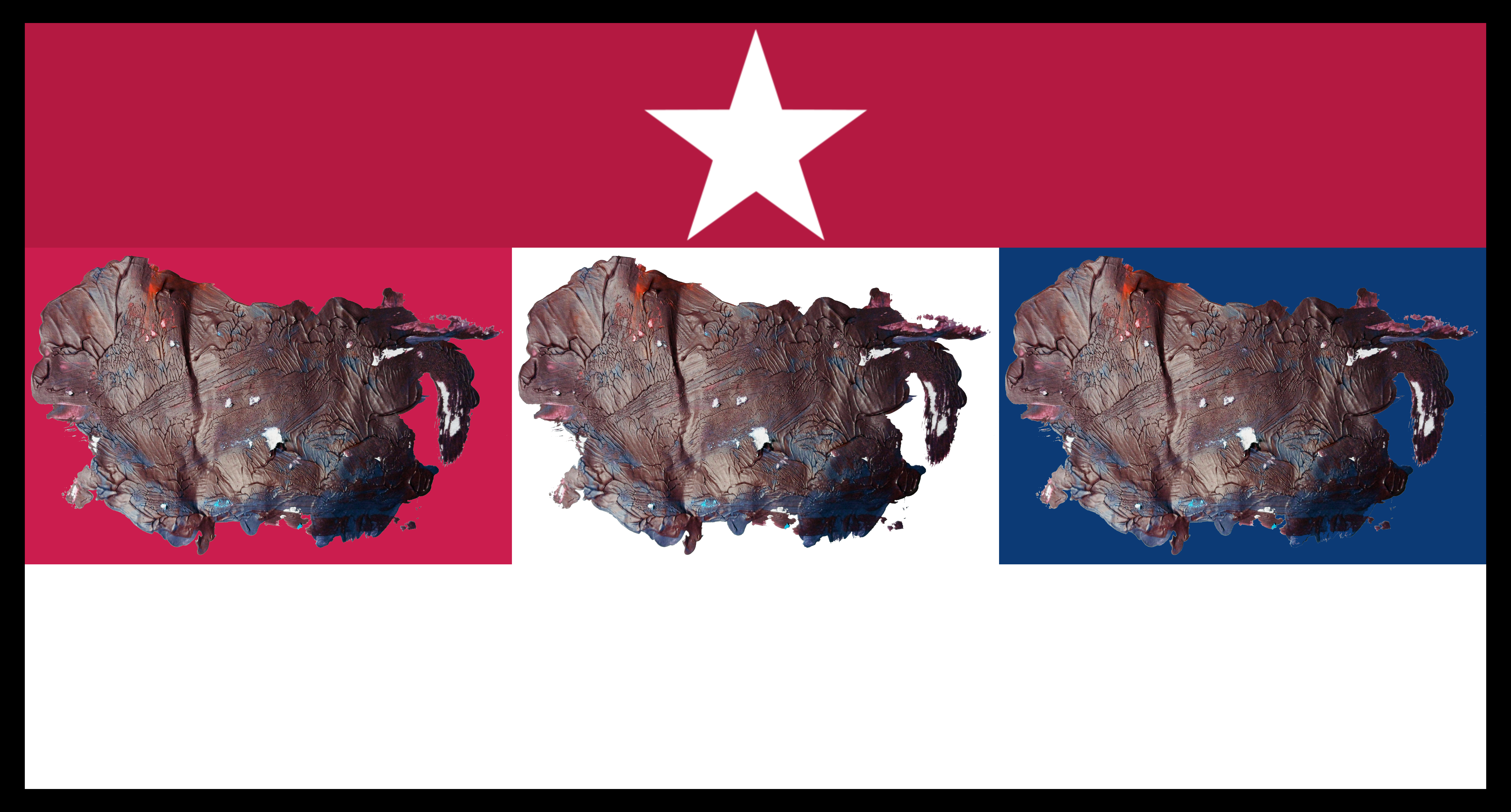 “White Star, Red & White Stripe, Triple Old Glory Colour North American Collage with Border” [digital artwork, 9th/12th September 2024] by Matt The Unfathomable Artist, 6480 x 3396 pixels.