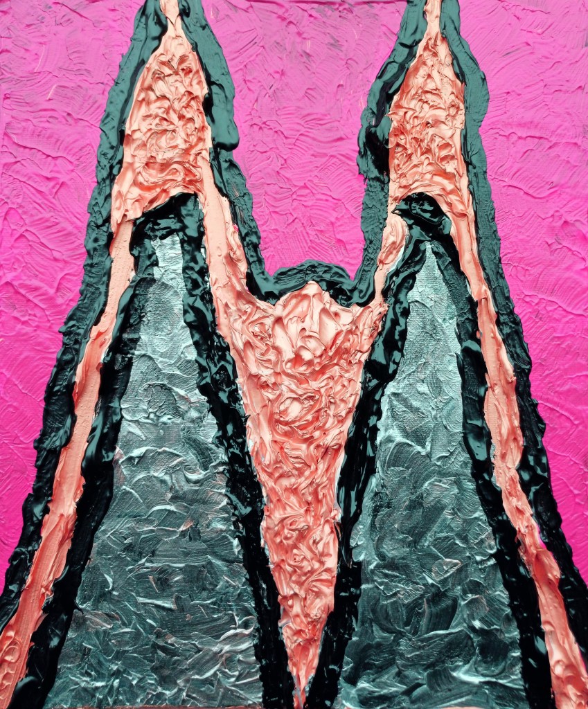 [ I pre-doodled the letter ‘M’ in pencil on card and then set to work on a new painting.