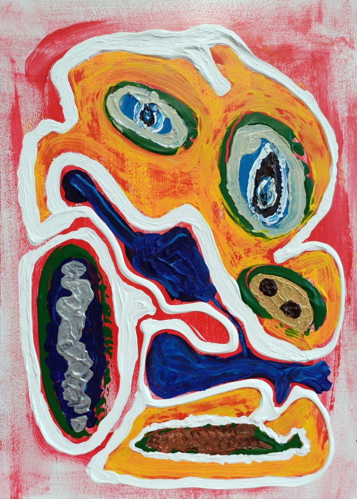 For those drawn to raw texture, unpredictability, and the visible trace of an artist’s mind, “Gold Sun Paint Play” is my version of how children love to paint.