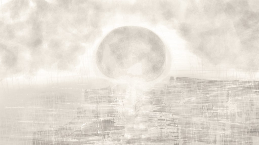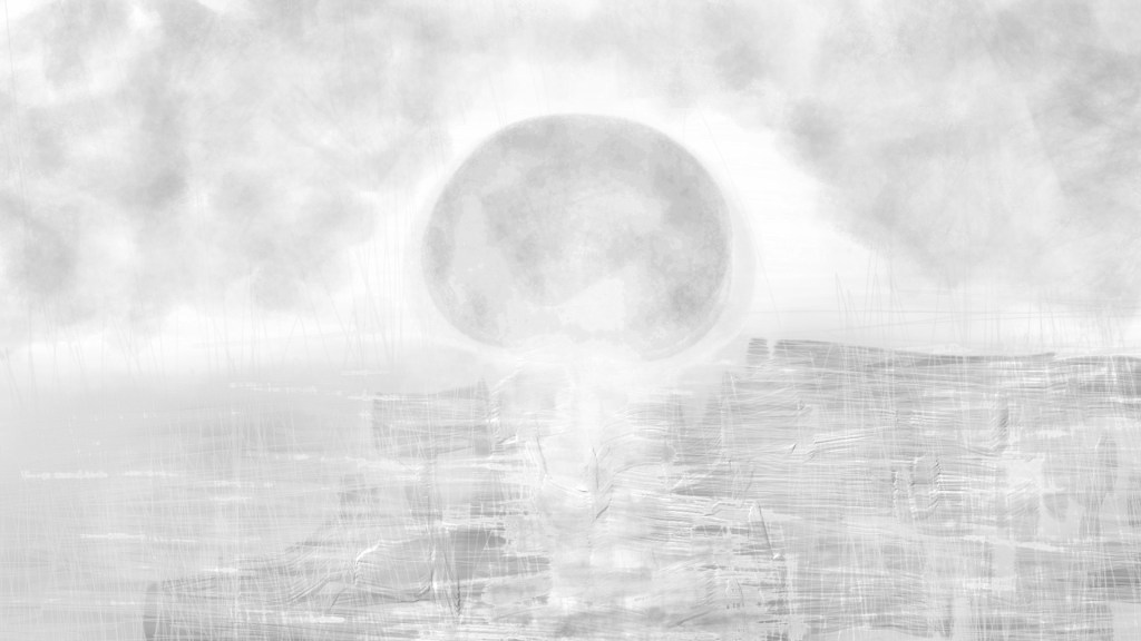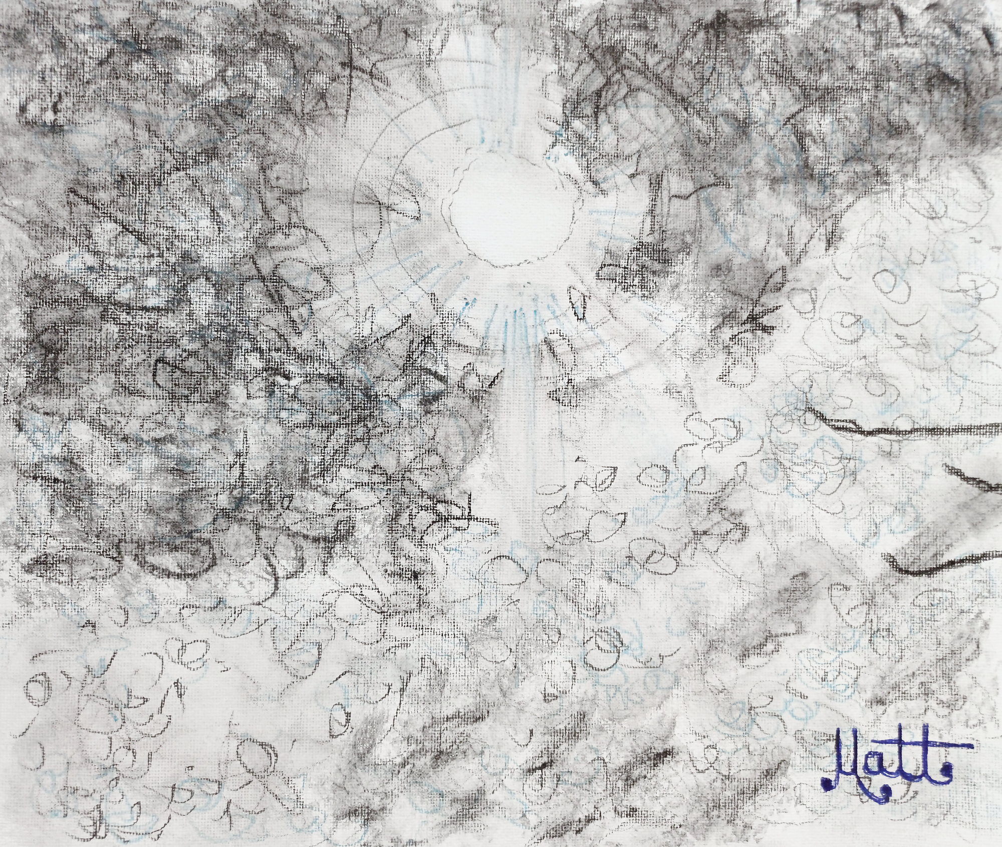 “Clouds in Moonlight“[29th January 2024] by Matt The Unfathomable Artist, sketch with B, HB, charcoal and sky-blue pencils on 250gsm 300mm gesso primed canvas pad, online Instagram image 2000 x 1691 pixels (original jpg 6480 x 5478).