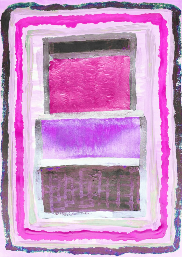 “Pink Purple Boxes with Pink & Black/Green/Blue Rectangles” [14th March 2024] by Matt The Unfathomable Artist, 100% digital artwork, 3000 x 4253 pixels image.