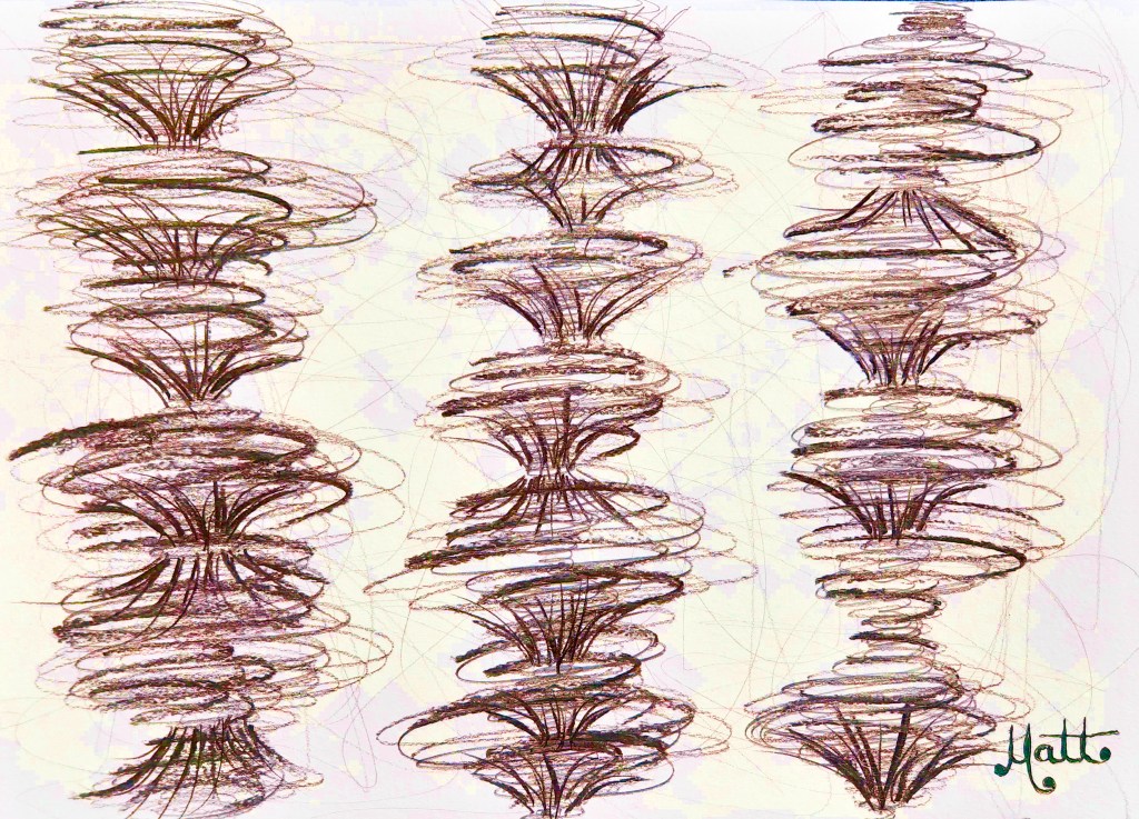 “Galaxies Reverberation #3 – COLLAGE” [28th July 2023] by Matt The Unfathomable Artist, digital artwork from the original drawing in charcoal (s) (m) (h) pencils with 8B detailing, signed in black ink on A3 250g/m² mixed media paper, digitally edited artwork image 2560 x 2560 pixels.