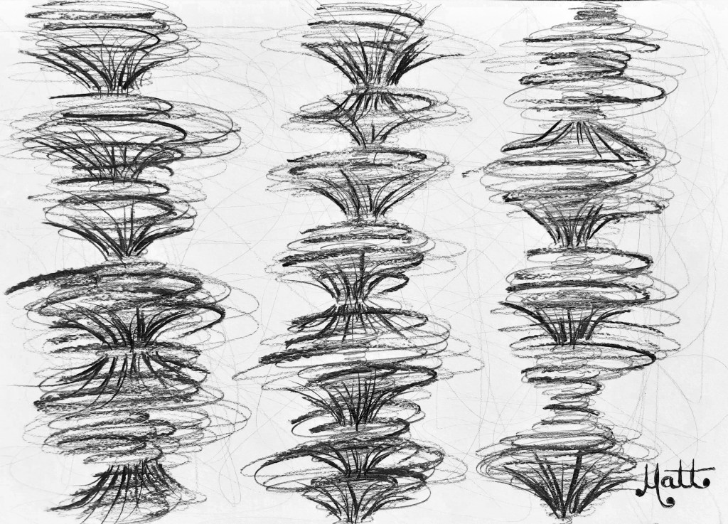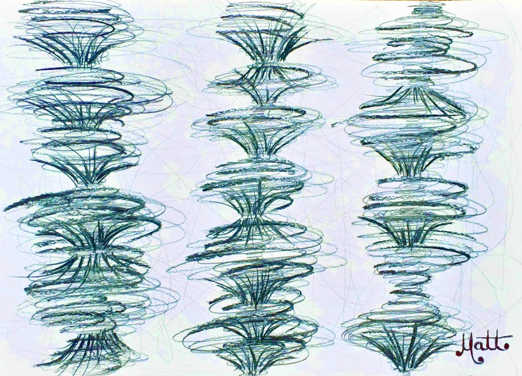 “Galaxies Reverberation #3 – Natural Turquoise” [28th July 2023] by Matt The Unfathomable Artist, digital artwork from the original drawing in charcoal (s) (m) (h) pencils with 8B detailing, signed in black ink on A3 250g/m² mixed media paper, digitally edited artwork image 3690 x 2667 pixels.
