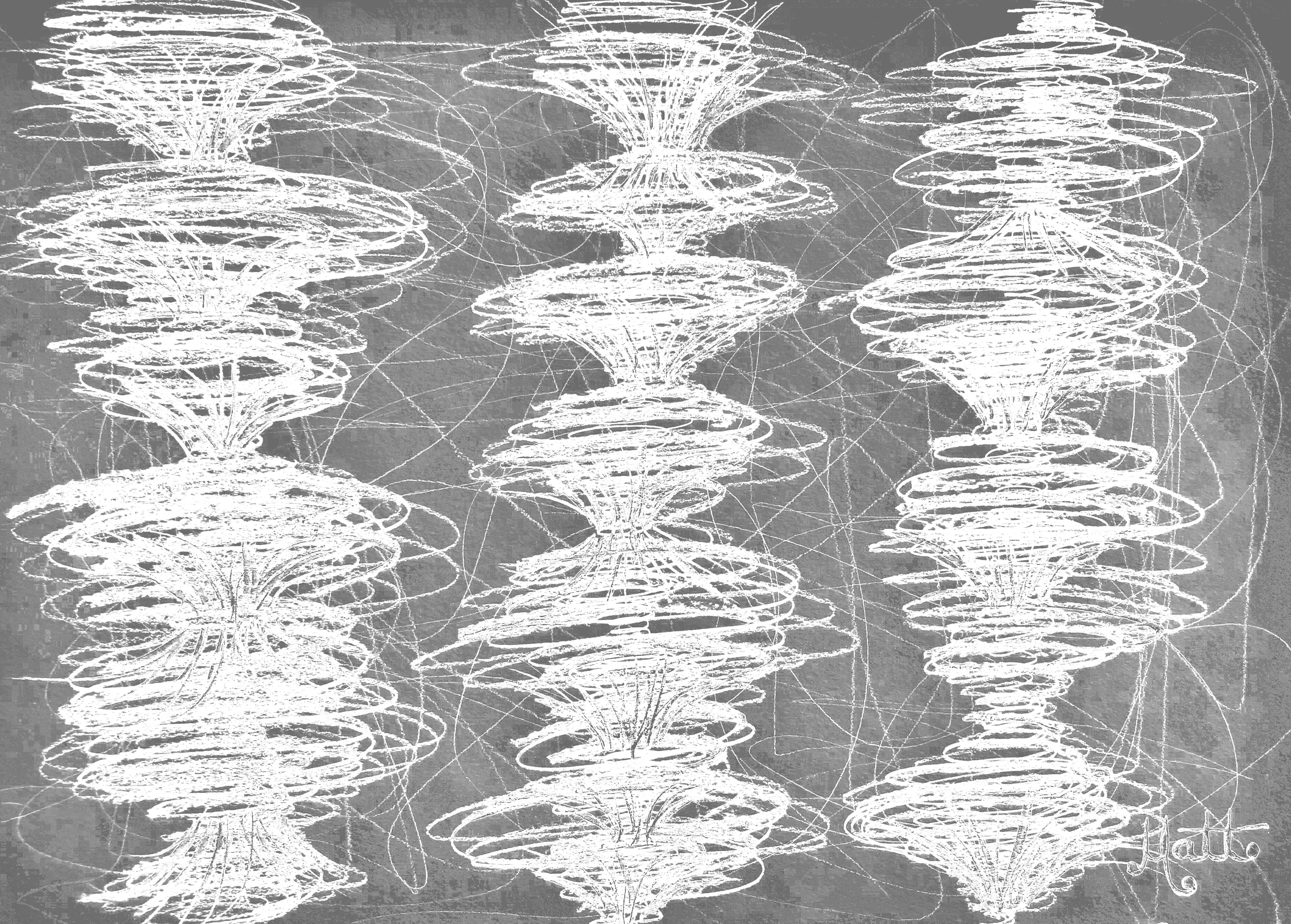 “Galaxies Reverberation #3 – Bright Green” [28th July 2023] by Matt The Unfathomable Artist, digital artwork from the original drawing in charcoal (s) (m) (h) pencils with 8B detailing, signed in black ink on A3 250g/m² mixed media paper, digitally edited artwork image 3690 x 2667 pixels.