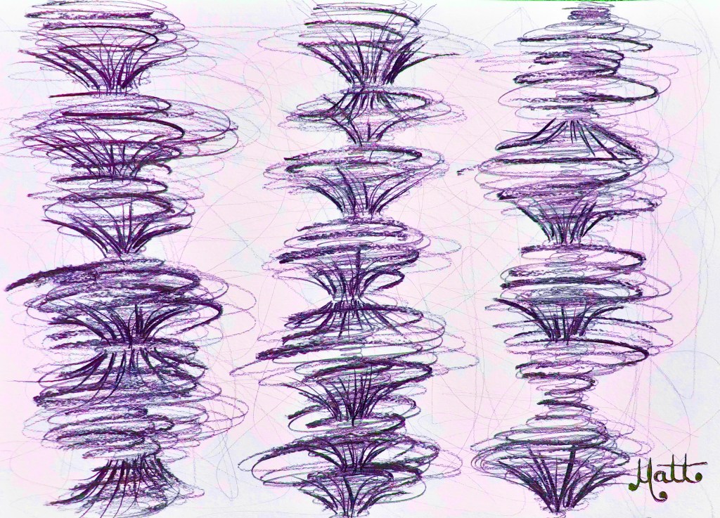 “Galaxies Reverberation #3 – Purple” [28th July 2023] by Matt The Unfathomable Artist, digital artwork from the original drawing in charcoal (s) (m) (h) pencils with 8B detailing, signed in black ink on A3 250g/m² mixed media paper, digitally edited artwork image 3690 x 2667 pixels.