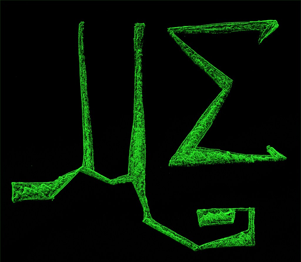 “MΣ [Starry version] – Lime Green” [2nd August 2023] by Matt The Unfathomable Artist, secondary digital artworks from my sketch [“MΣ”] using 3H, HB and 3B pencils, original sketch on A4 135gsm Artist’s paper, digital artwork 2560 x 2560 pixels.