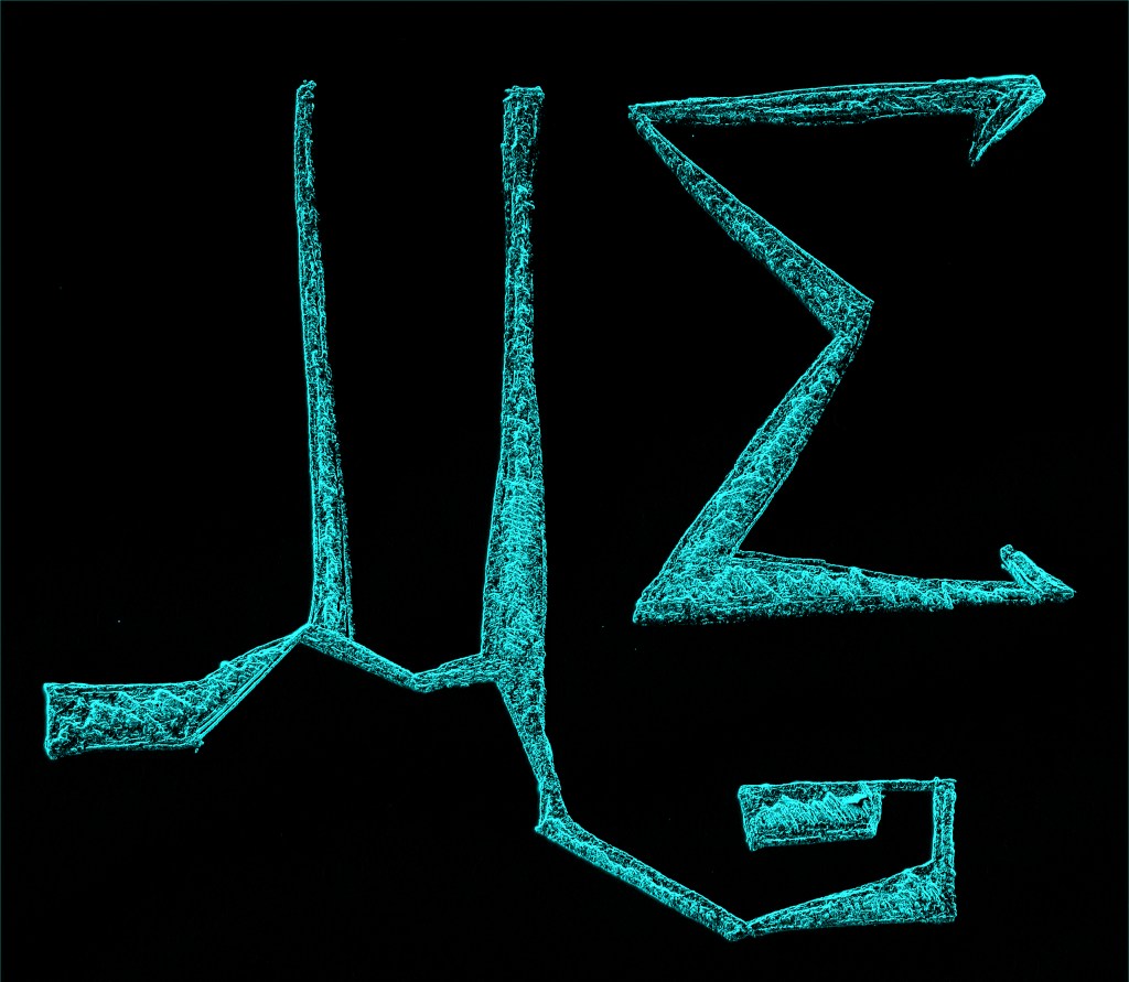 “MΣ [Starry version] – Vivid Cyan” [2nd August 2023] by Matt The Unfathomable Artist, secondary digital artworks from my sketch [“MΣ”] using 3H, HB and 3B pencils, original sketch on A4 135gsm Artist’s paper, digital artwork 2560 x 2560 pixels.