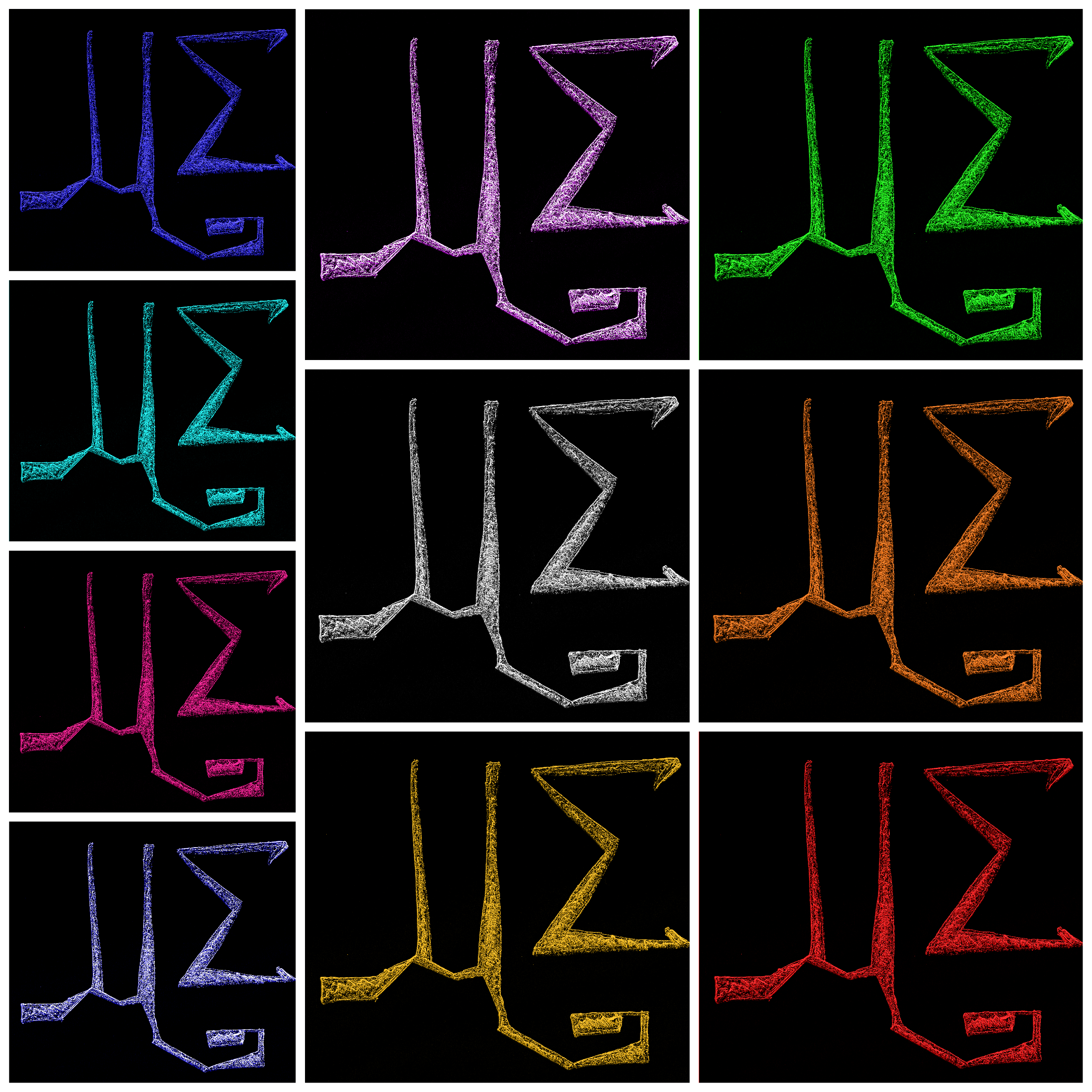 “MΣ [Starry version] – Colorised Collage” is made from ten individually unique colorised digital versions of my earlier ‘Starry version’ [25th June 2021] artwork.