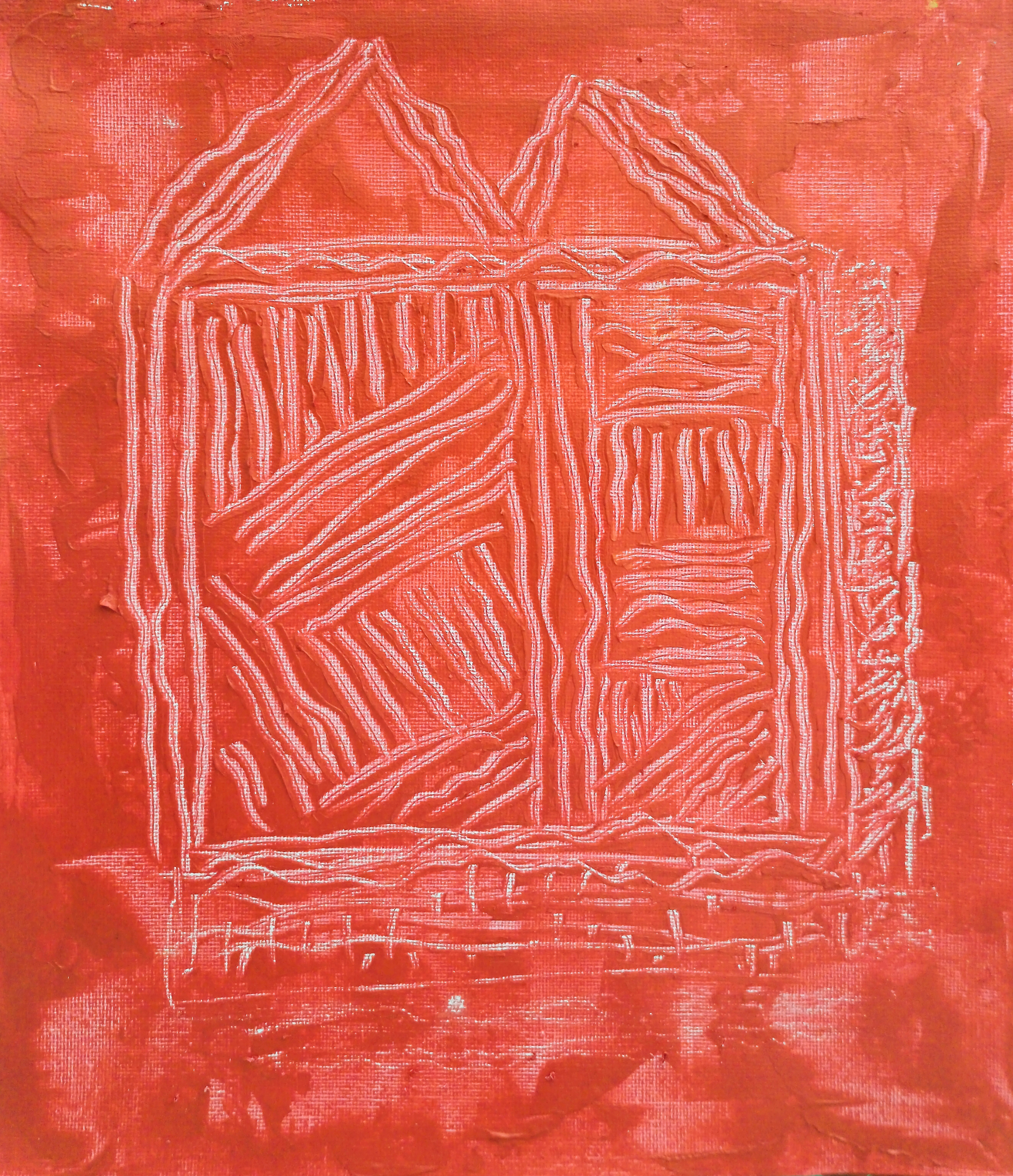 [ “Red Scratchpad” is made with quick palette knife scratches with its own unique pattern.