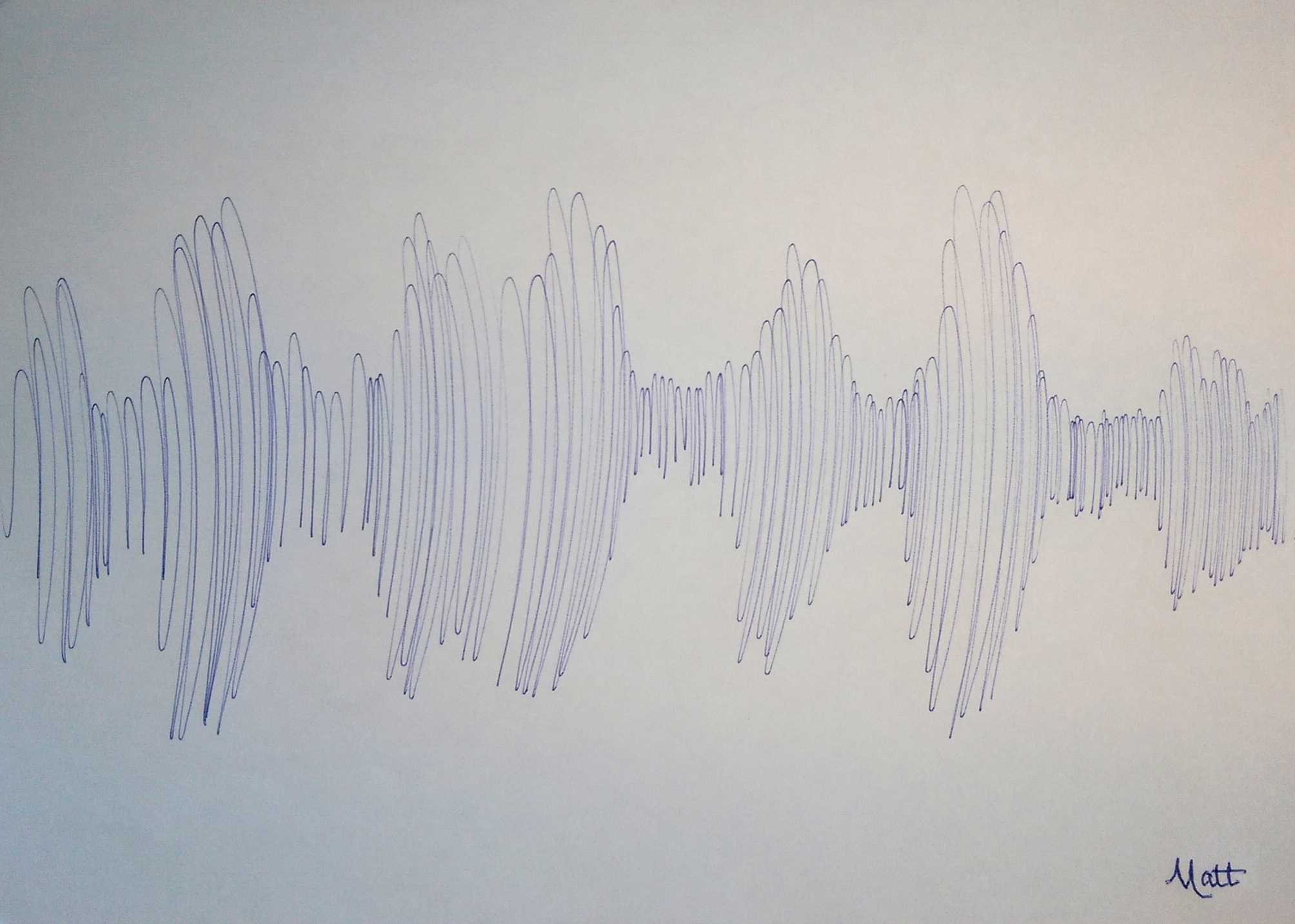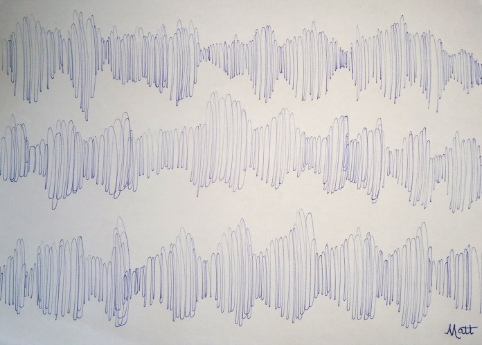‘Soundwaves [number 1]’ on A4 paper using blue ink pen – June 6th 2016 by Matt The Unfathomable Artist.