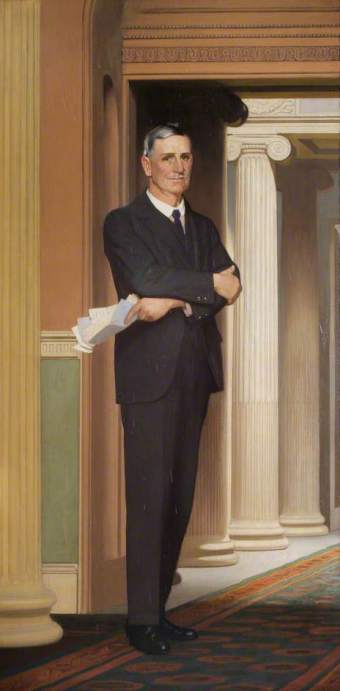 ‘William Henry Clegg (1867-1945), Director of the Bank of England (1932-1937)’ by Sir George Clausen, Oil on canvas, 235 cm x 120 cm.