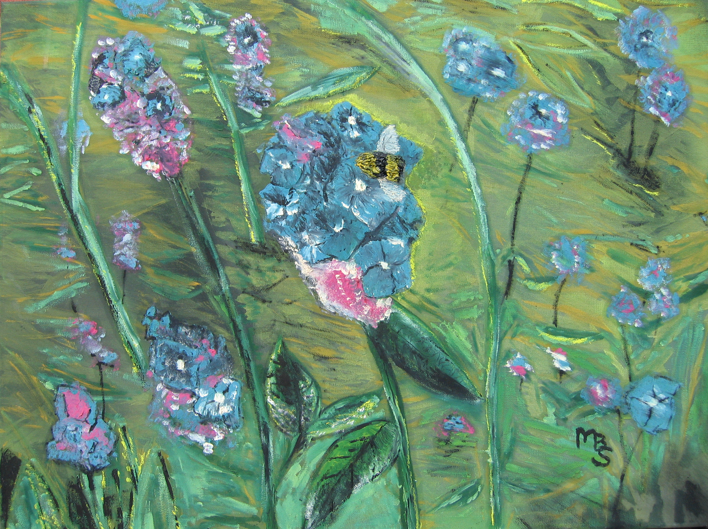 For the primary working I utilised three painting techniques: palette knife, paintbrush motions using approximately four brushes, and constant-direct tube paint applications onto the canvas for the grass-green and turquoise surrounds.